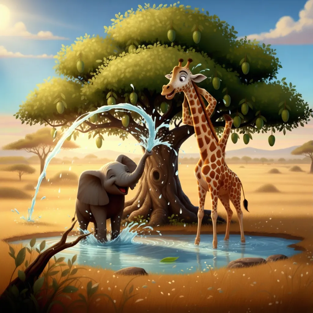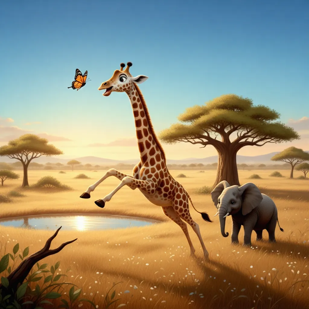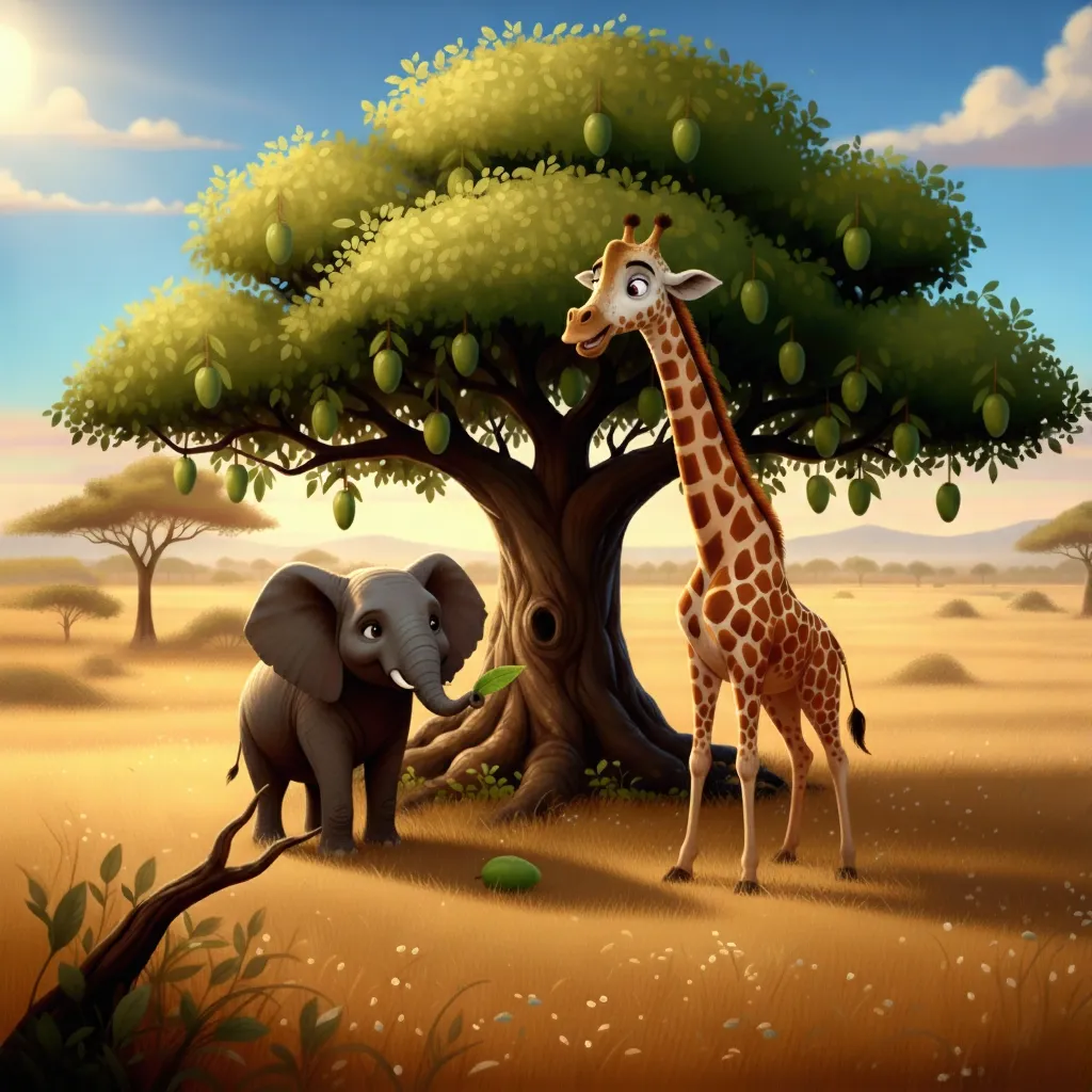 Güneşin gökyüzünde pırıl pırıl parladığı Afrika savanlarında, iki çok iyi arkadaş yaşarmış. Biri, uzun boynuyla her yere uzanmaya çalışan ama bir türlü yerinde duramayan meraklı zürafa yavrusu Meraklı'ymış. Diğeri ise sakin adımlarıyla dolaşan, kocaman kalpli fil yavrusu Tonton'muş.