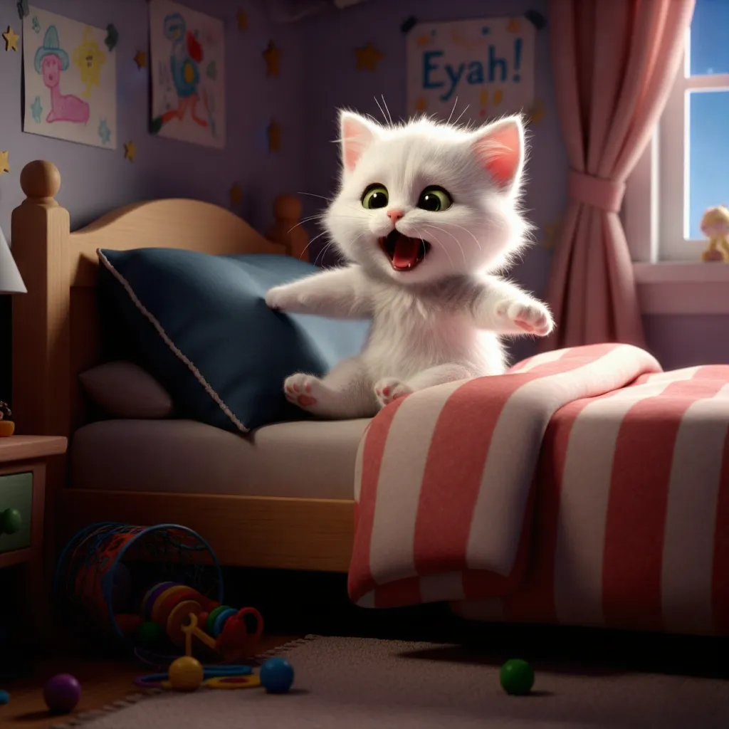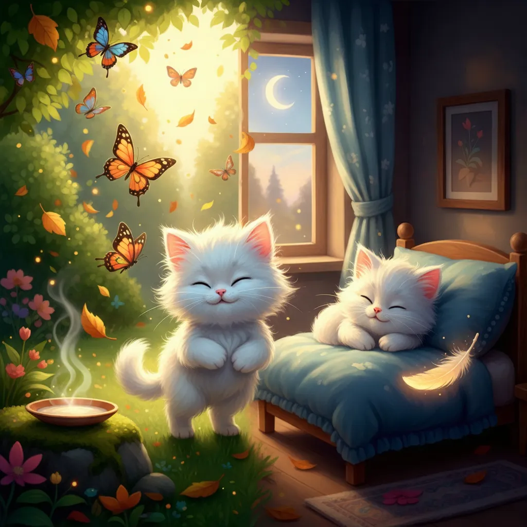 Evvel zaman içinde, pamuk gibi yumuşacık tüyleri olan küçük bir kedicik yaşarmış. Adı Yumak'mış. Yumak, gün boyunca kelebekleri kovalamayı, yaprak hışırtılarını dinlemeyi ve sıcak süt içmeyi çok severmiş. Ama en sevdiği zaman, akşam olup yatağına kıvrılma vaktiymiş. Çünkü Yumak'ın bir sırrı varmış: Her gece yastığının altına gizlenen, parlayan bir "Uyku Tüyü" sayesinde mışıl mışıl uyurmuş.