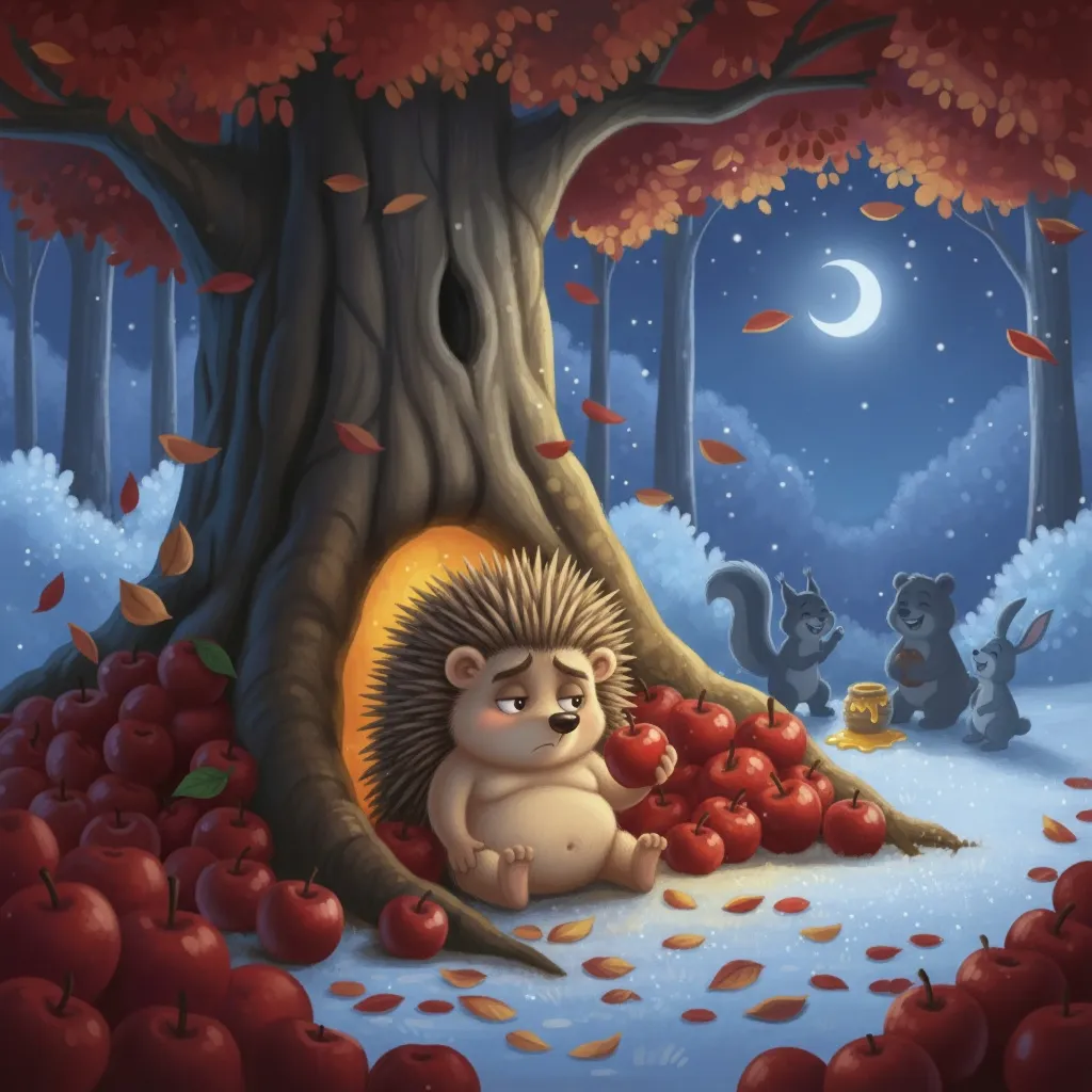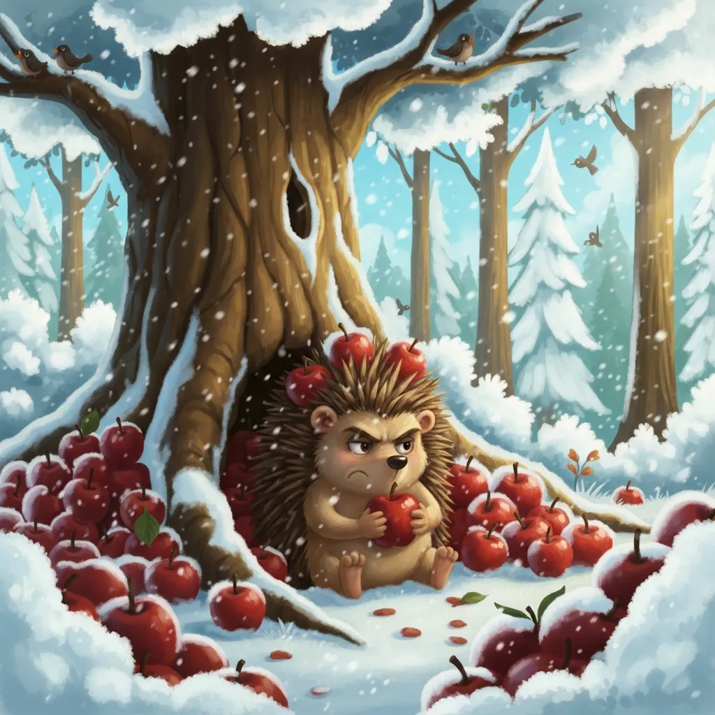 "Merhaba Keskincik," demiş Pofuduk yumuşak bir sesle. "Ne kadar çok elma bulmuşsun! Harika. Kış çok çetin geçecek gibi görünüyor. Acaba birkaç tanesini yuvası boş olan Sincap Zıpır ile paylaşır mısın?"Keskincik hemen dikenlerini kabartmış. "Hayır! Hepsini ben topladım. Bunlar benim kışlık yiyeceğim. Neden başkasına vereyim ki? Herkes kendi yiyeceğini bulsun!" diye homurdanmış. Elmaları hızla dikenlerine takmış ve yuvasına girip kapısını sıkıca kapatmış.