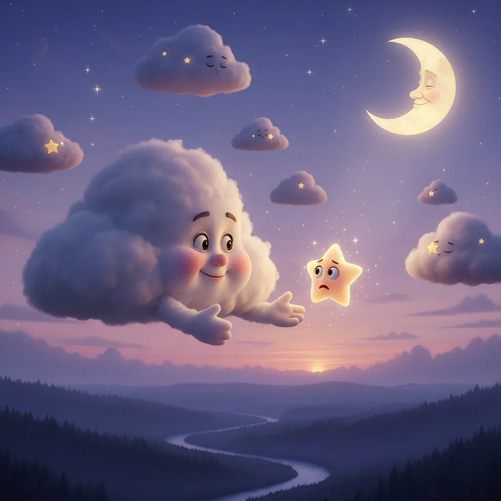 Güneş yavaşça dağların arkasına saklanırken, gökyüzü yumuşacık bir mora bürünmüştü. Bu, küçük bulut Pofuduk'un en sevdiği zamandı. Pofuduk, gökyüzündeki diğer bulutlar gibi değildi; o, yıldızların "Uyku Bulutu"ydu. Görevi, gece olduğunda gökyüzünü kabartmak ve yıldızlara yumuşacık yataklar hazırlamaktı.
