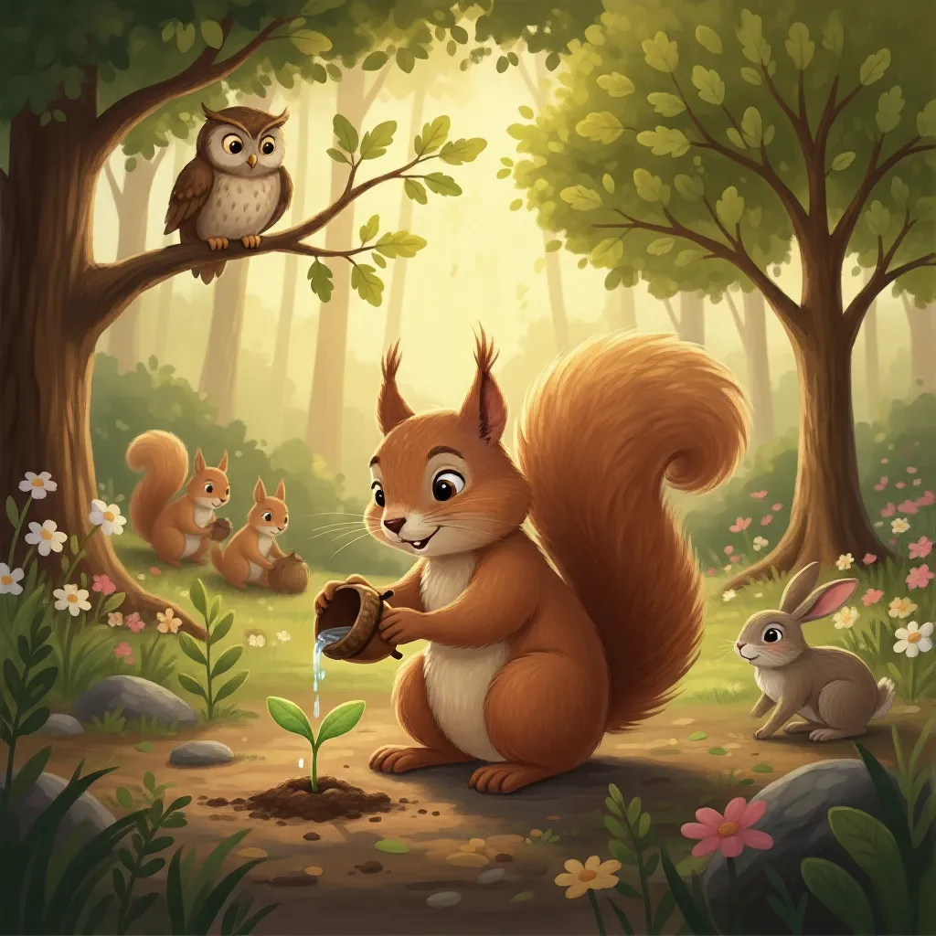 Ormanın en hızlı, en telaşlı sincabı Kıpır, bir gün Bilge Baykuş'tan özel bir tohum buldu. Bilge Baykuş ona, "Bu tohum, ormanın en güçlü ağacının tohumudur, Kıpır. Ama onu büyütmek için özel bir sihire ihtiyacın var," dedi. Kıpır heyecanla zıpladı. "Sihir mi? Harika! Hangi sihirli sözcüğü