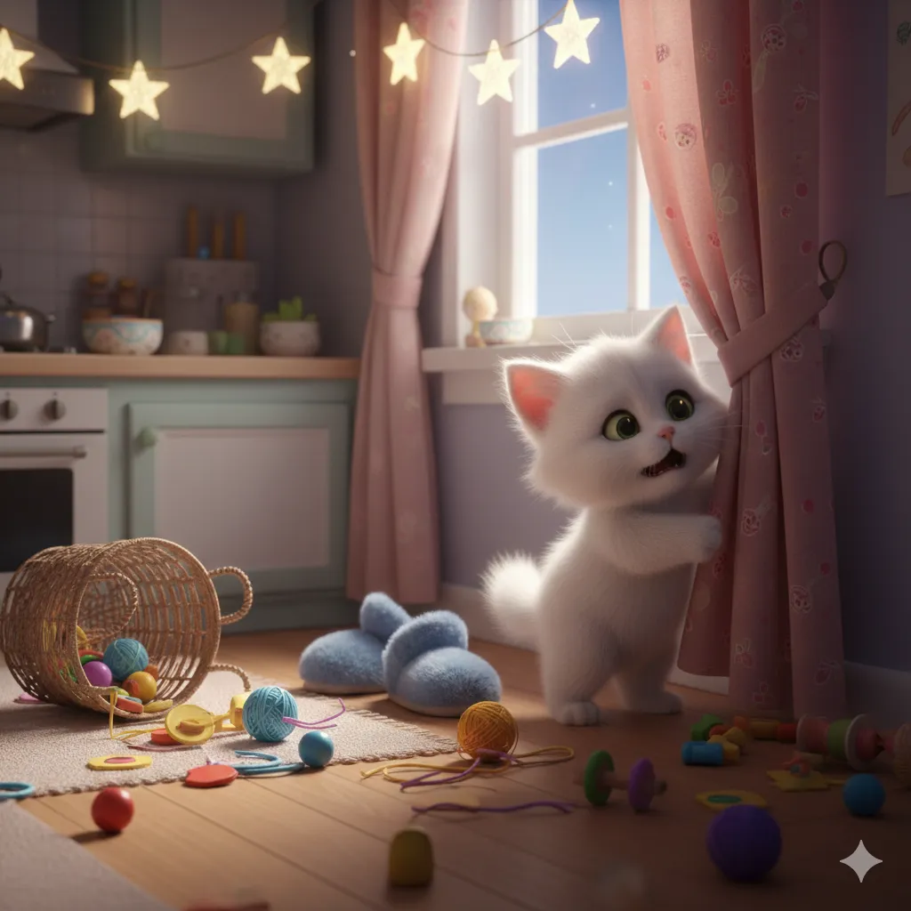 Evvel zaman içinde, pamuk gibi yumuşacık tüyleri olan küçük bir kedicik yaşarmış. Adı Yumak'mış. Yumak, gün boyunca kelebekleri kovalamayı, yaprak hışırtılarını dinlemeyi ve sıcak süt içmeyi çok severmiş. Ama en sevdiği zaman, akşam olup yatağına kıvrılma vaktiymiş. Çünkü Yumak'ın bir sırrı varmış: Her gece yastığının altına gizlenen, parlayan bir "Uyku Tüyü" sayesinde mışıl mışıl uyurmuş.
